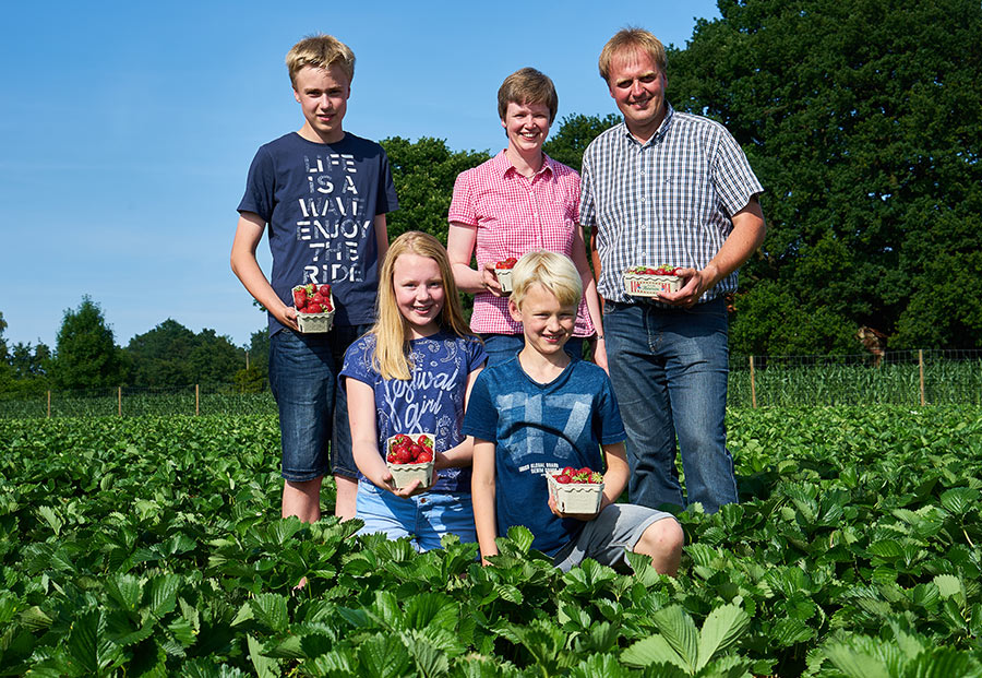 Seit mehreren Generationen ist unser Hof in Familienbesitz. Wir bewirtschaften einen traditionellen landwirtschaftlichen Familienbetrieb mit Ackerbau und Schweinehaltung. Die Königin der Beeren hat es auch uns angetan, so dass wir uns für den Anbau von Erdbeeren entschieden haben. Im Jahre 2002 konnten wir die ersten leckeren Erdbeeren ernten.